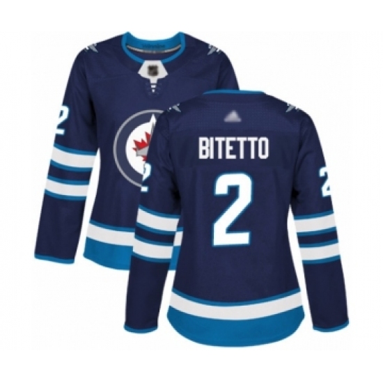 Women's Winnipeg Jets #2 Anthony Bitetto Premier Navy Blue Home Hockey Jersey