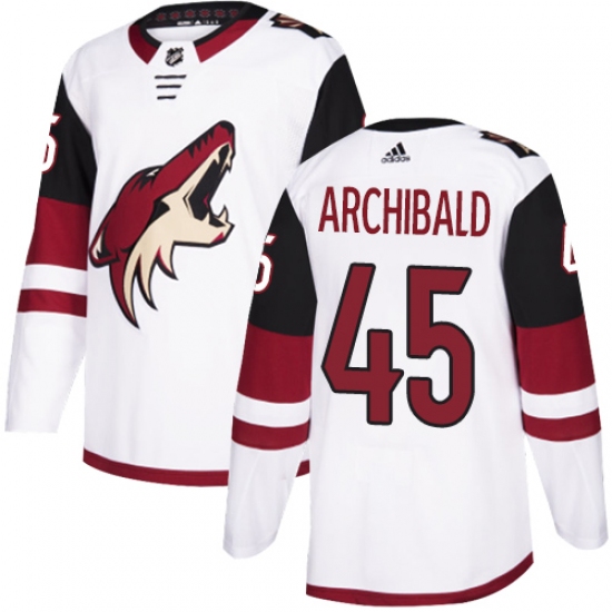 >Youth Adidas Arizona Coyotes #45 Josh Archibald Authentic White Away NHL Jersey
