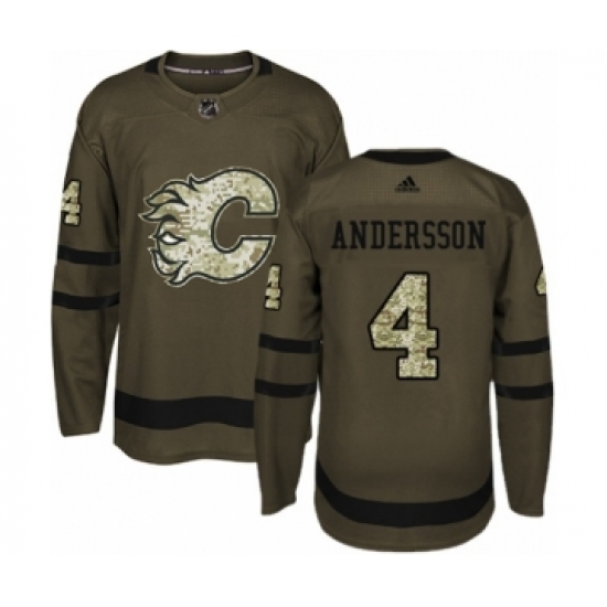 Men's Adidas Calgary Flames #4 Rasmus Andersson Authentic Green Salute to Service NHL Jersey