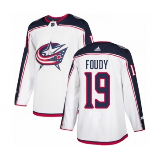 Men's Columbus Blue Jackets #19 Liam Foudy Authentic White Away Fanatics Branded Breakaway NHL Jersey