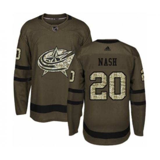 >Youth Adidas Columbus Blue Jackets #20 Riley Nash Premier Green Salute to Service NHL Jersey