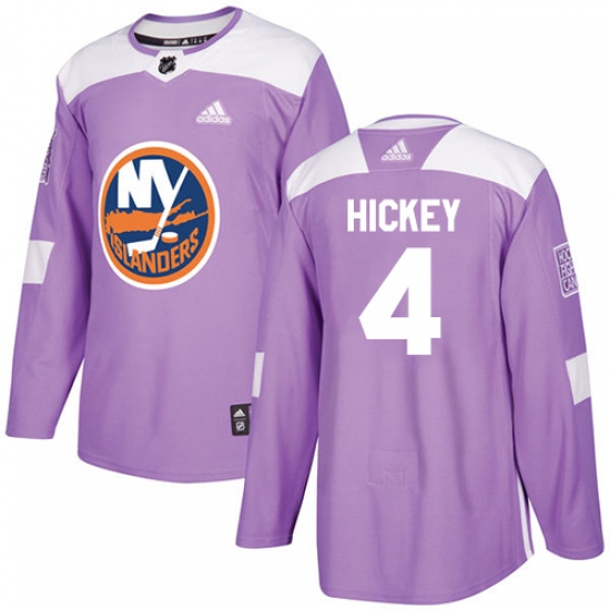 Men's Adidas New York Islanders #4 Thomas Hickey Authentic Purple Fights Cancer Practice NHL Jersey