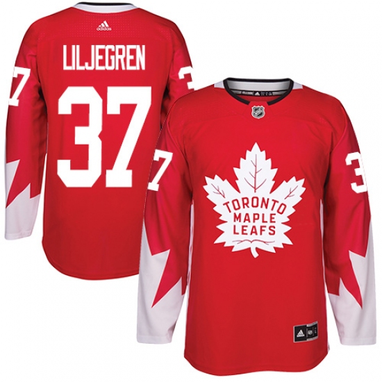>Youth Adidas Toronto Maple Leafs #37 Timothy Liljegren Authentic Red Alternate NHL Jersey