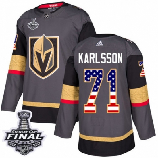 Men's Adidas Vegas Golden Knights #71 William Karlsson Authentic Gray USA Flag Fashion 2018 Stanley Cup Final NHL Jersey