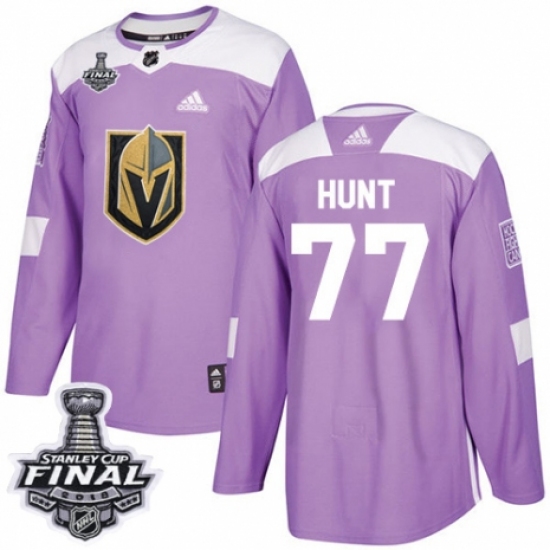 >Youth Adidas Vegas Golden Knights #77 Brad Hunt Authentic Purple Fights Cancer Practice 2018 Stanley Cup Final NHL Jersey