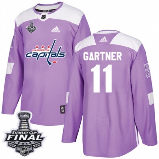 Youth Adidas Washington Capitals #11 Mike Gartner Authentic Purple Fights Cancer Practice 2018 Stanley Cup Final NHL Jersey