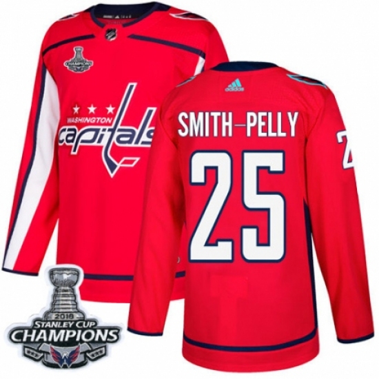 Youth Adidas Washington Capitals #25 Devante Smith-Pelly Authentic Red Home 2018 Stanley Cup Final Champions NHL Jersey