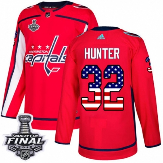 >Youth Adidas Washington Capitals #32 Dale Hunter Authentic Red USA Flag Fashion 2018 Stanley Cup Final NHL Jersey