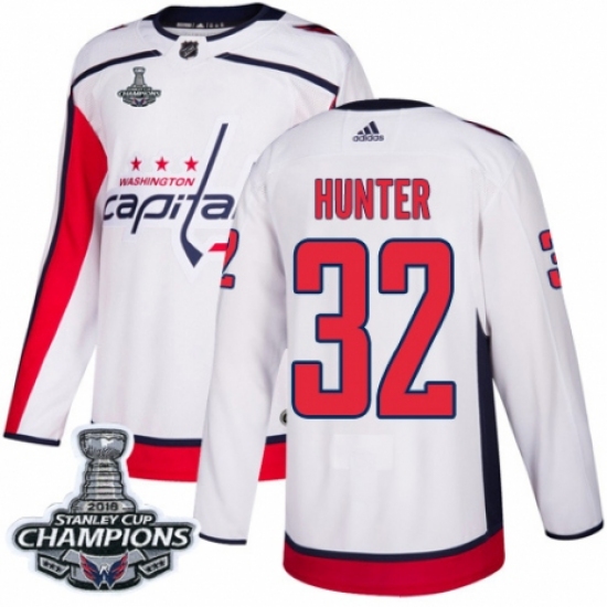 Youth Adidas Washington Capitals #32 Dale Hunter Authentic White Away 2018 Stanley Cup Final Champions NHL Jersey
