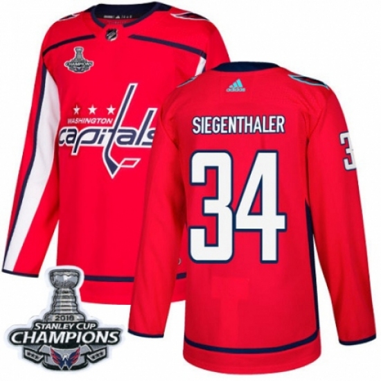 Men's Washington Capitals #34 Jonas Siegenthaler Fanatics Branded Red Home Breakaway 2018 Stanley Cup Final NHL Jersey