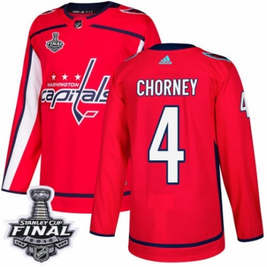 Men's Adidas Washington Capitals #4 Taylor Chorney Authentic Red Home 2018 Stanley Cup Final NHL Jersey