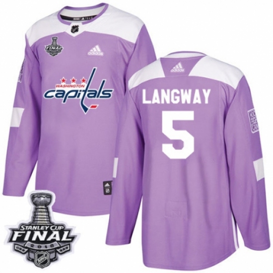 Youth Adidas Washington Capitals #5 Rod Langway Authentic Purple Fights Cancer Practice 2018 Stanley Cup Final NHL Jersey