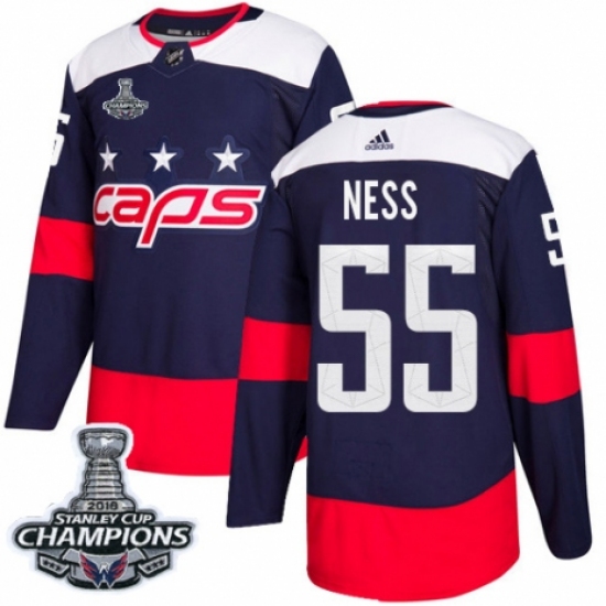 >Youth Adidas Washington Capitals #55 Aaron Ness Authentic Navy Blue 2018 Stadium Series 2018 Stanley Cup Final Champions NHL Jersey