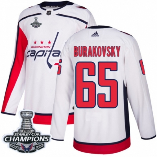 Youth Adidas Washington Capitals #65 Andre Burakovsky Authentic White Away 2018 Stanley Cup Final Champions NHL Jersey