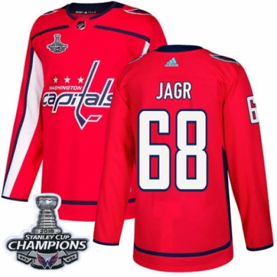 Youth Adidas Washington Capitals #68 Jaromir Jagr Authentic Red Home 2018 Stanley Cup Final Champions NHL Jersey
