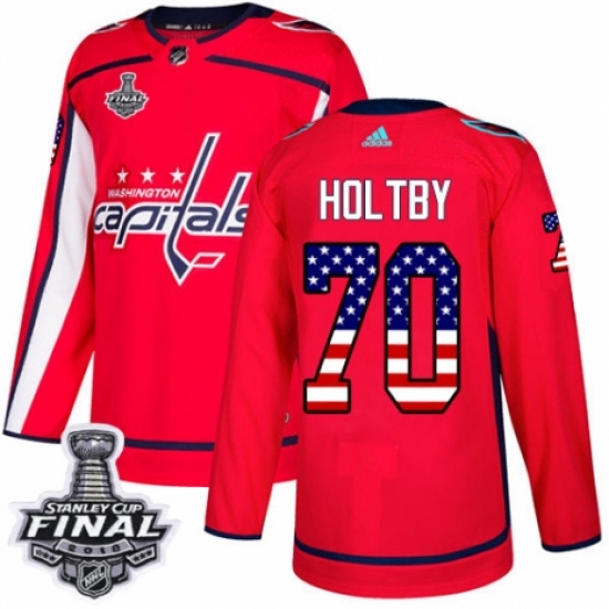 Men's Adidas Washington Capitals #70 Braden Holtby Authentic Red Home 2018 Stanley Cup Final Champions NHL Jersey