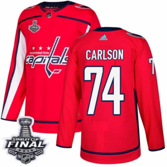 Youth Adidas Washington Capitals #74 John Carlson Authentic Red Home 2018 Stanley Cup Final NHL Jersey