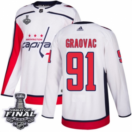 Youth Adidas Washington Capitals #91 Tyler Graovac Authentic White Away 2018 Stanley Cup Final NHL Jersey