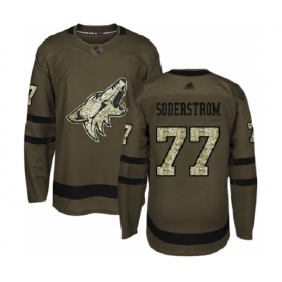Men's Arizona Coyotes #77 Victor Soderstrom Authentic Green Salute to Service Hockey Jersey