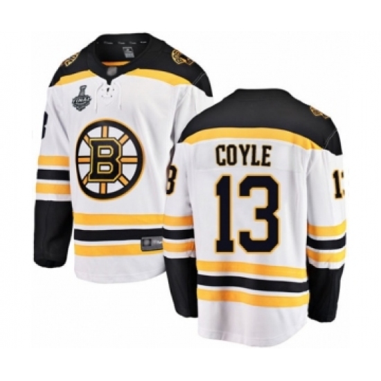 Youth Boston Bruins #13 Charlie Coyle Authentic White Away Fanatics Branded Breakaway 2019 Stanley Cup Final Bound Hockey Jersey