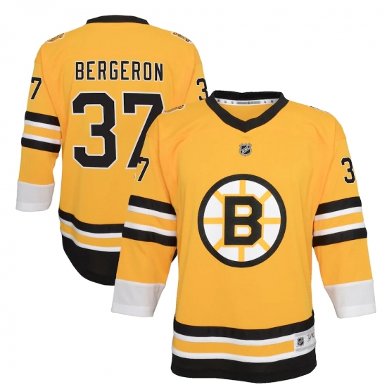 Youth Boston Bruins #37 Patrice Bergeron Yellow 2020-21 Special Edition Replica Player Jersey