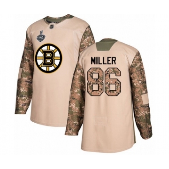 >Youth Boston Bruins #86 Kevan Miller Authentic Camo Veterans Day Practice 2019 Stanley Cup Final Bound Hockey Jersey