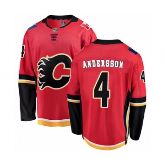 >Youth Calgary Flames #4 Rasmus Andersson Authentic Red Home Fanatics Branded Breakaway NHL Jersey
