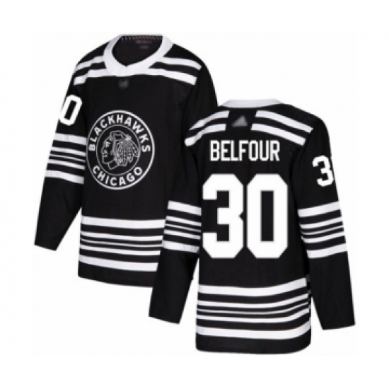 Women's Adidas Chicago Blackhawks #30 ED Belfour Authentic Black 2019 Winter Classic NHL Jersey