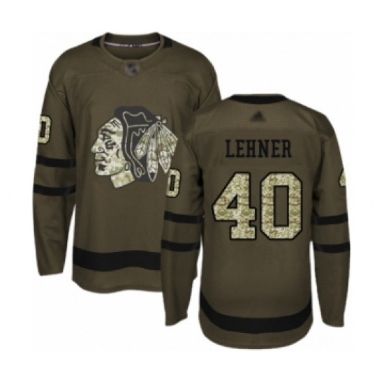 >Youth Chicago Blackhawks #40 Robin Lehner Authentic Green Salute to Service Hockey Jersey