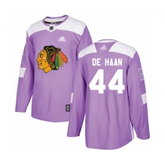 Youth Chicago Blackhawks #44 Calvin De Haan Authentic Purple Fights Cancer Practice Hockey Jersey