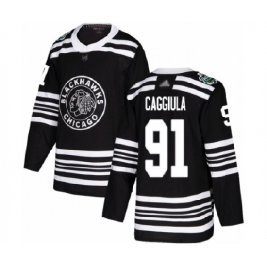 >Youth Chicago Blackhawks #91 Drake Caggiula Authentic Black 2019 Winter Classic Hockey Jersey
