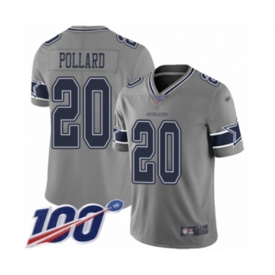 Men's Dallas Cowboys #20 Tony Pollard Limited Gray Inverted Legend 100th Season Football Jersey