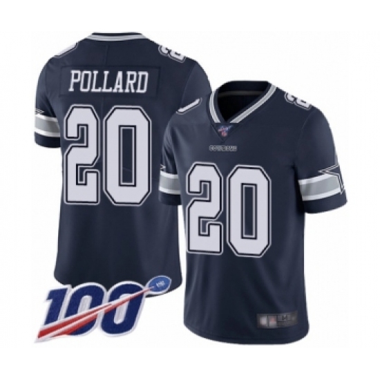 >Youth Dallas Cowboys #20 Tony Pollard Navy Blue Team Color Vapor Untouchable Limited Player 100th Season Football Jersey