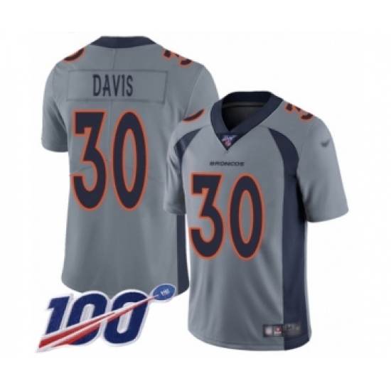 >Youth Denver Broncos #30 Terrell Davis Limited Silver Inverted Legend 100th Season Football Jersey