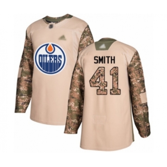 >Youth Edmonton Oilers #41 Mike Smith Authentic Camo Veterans Day Practice Hockey Jersey