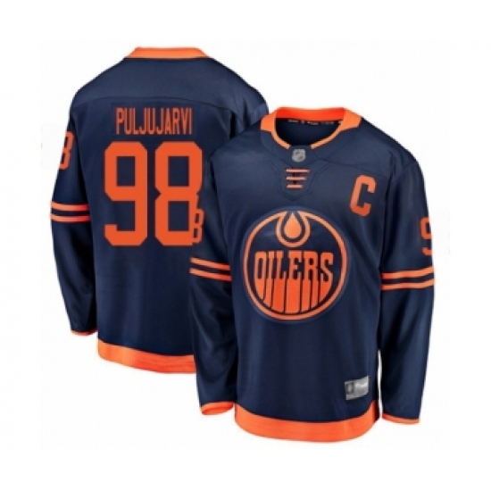 Men's Edmonton Oilers #98 Jesse Puljujarvi Authentic Navy Blue Alternate Hockey Jersey
