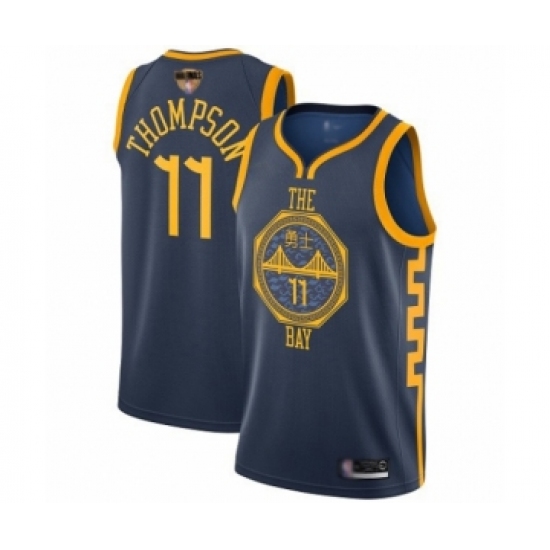 >Youth Golden State Warriors #11 Klay Thompson Swingman Navy Blue Basketball 2019 Basketball Finals Bound Jersey - City Edition