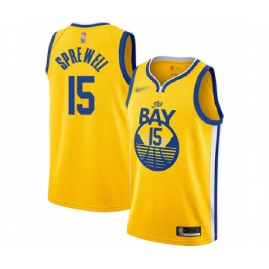 >Youth Golden State Warriors #15 Latrell Sprewell Swingman Gold Finished Basketball Jersey - Statement Edition