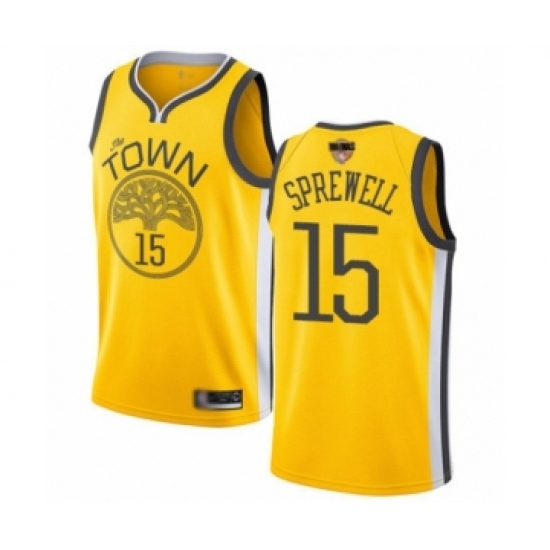Men's Golden State Warriors #15 Latrell Sprewell Swingman Gold 2019 Basketball Finals Bound Basketball Jersey - City Edition
