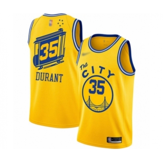 Youth Golden State Warriors #35 Kevin Durant Yellow Swingman 2019 Basketball Finals Bound Jersey - Earned Edition
