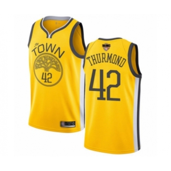 Men's Golden State Warriors #42 Nate Thurmond Swingman Gold 2019 Basketball Finals Bound Basketball Jersey - City Edition