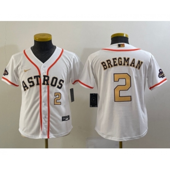 Youth Houston Astros #2 Alex Bregman Number 2023 White Gold World Serise Champions Cool Base Stitched Jerseys