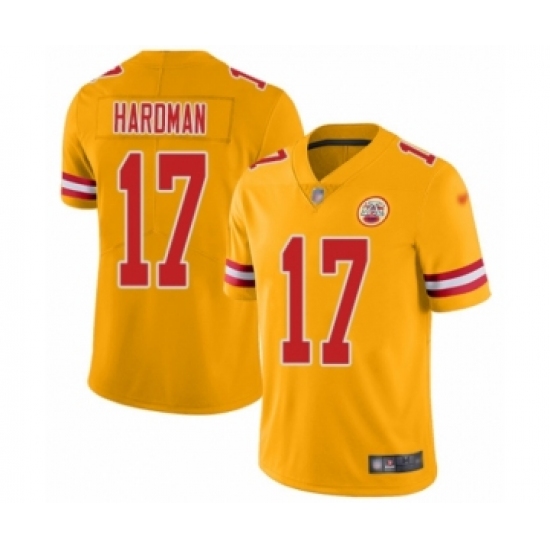 >Youth Kansas City Chiefs #17 Mecole Hardman Limited Gold Inverted Legend Football Jersey