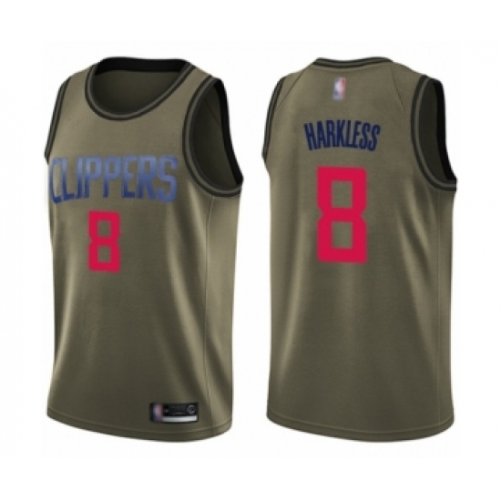 >Youth Los Angeles Clippers #8 Moe Harkless Swingman Green Salute to Service Basketball Jersey