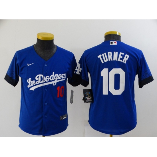 >Youth Los Angeles Dodgers #10 Justin Turner Blue City Player Jersey