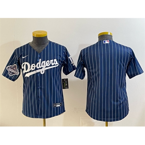 >Youth Los Angeles Dodgers Blank Navy Pinstripe 2025 World Series Champions Cool Base Stitched Baseball Jersey