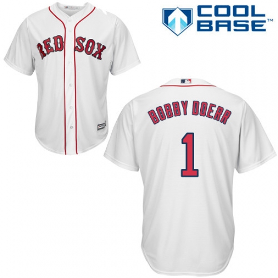 Home>MLB>Boston Red Sox>Bobby Doerr>Youth Majestic Boston Red Sox #1 Bobby Doerr Authentic White Home Cool Base MLB Jersey