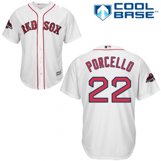 Youth Majestic Boston Red Sox #22 Rick Porcello Authentic White Home Cool Base 2018 World Series Champions MLB Jersey