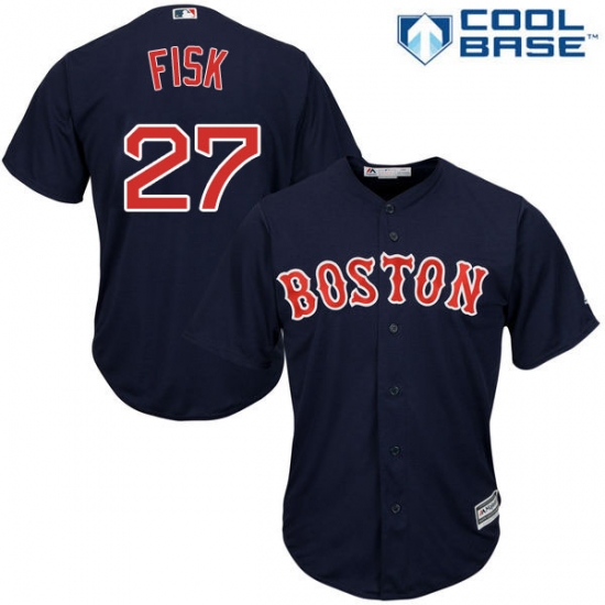 Home>MLB>Boston Red Sox>Carlton Fisk>Youth Majestic Boston Red Sox #27 Carlton Fisk Authentic Navy Blue Alternate Road Cool Base MLB Jersey