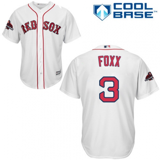>Youth Majestic Boston Red Sox #3 Jimmie Foxx Authentic White Home Cool Base 2018 World Series Champions MLB Jersey